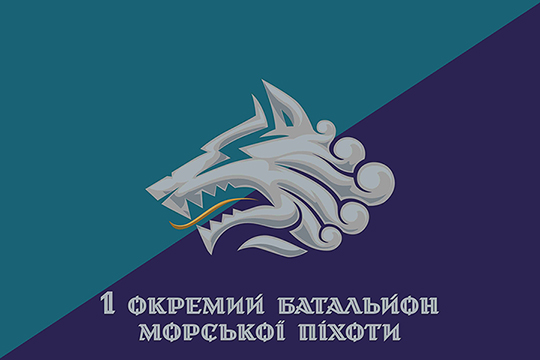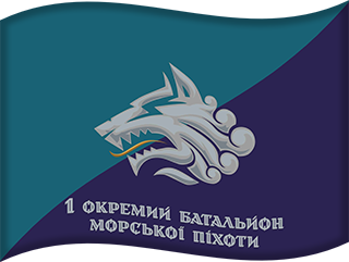 Прапор 1-го окремого батальйону морської піхоти Збройних Сил України — це символ незламності, сили та бойового братерства українських морпіхів. Діагонально поділене полотнище поєднує морський синій і глибокий темно-синій кольори, що уособлюють стихії моря та ночі — природне середовище, у якому діє еліта флотських військ.