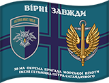 «38-ма окрема бригада морської піхоти імені гетьмана Петра Сагайдачного», що робить прапор урочистим, впізнаваним і статусним.