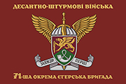 Цей прапор 71-ї ОЄБр використовується для ідентифікації частини, підвищення бойового духу та демонстрації належності до елітного роду військ.