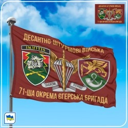 Фон прапора 71-ї окремої єгерської бригади Десантно-штурмових військ Збройних сил України — темно-бордовий (винний) колір, традиційний для Десантно-штурмових військ. Угорі напис золотими літерами «ДЕСАНТНО-ШТУРМОВІ ВІЙСЬКА». Внизу золотий напис «71-ша окрема єгерська бригада».