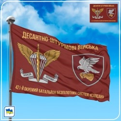 Прапор 421-го окремого батальйону безпілотних систем «Сапсан» візуально уособлює сучасну війну, в якій перевага здобувається не тільки вогнем, а й розвідкою, точністю та технологією. Це новітній символ українського війська, що поєднує бойову міць із інтелектуальним підходом до ведення бойових дій.