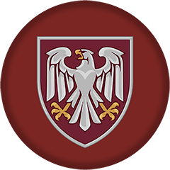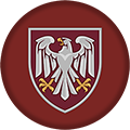 Праворуч зображено геральдичний щит із білим соколом - символ рішучого удару, стратегічного мислення та повітряного панування.