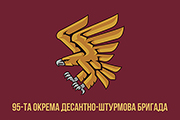 Прапор 95-ї окремої десантно-штурмової бригади (95 ОДШБр) Збройних Сил України — це символ мужності, сили та повітряного домінування елітного з'єднання Десантно-штурмових військ. Стяг виконано у традиційному бордовому кольорі, що є ознакою належності до ДШВ та уособлює відвагу, кров і самопожертву захисників України.